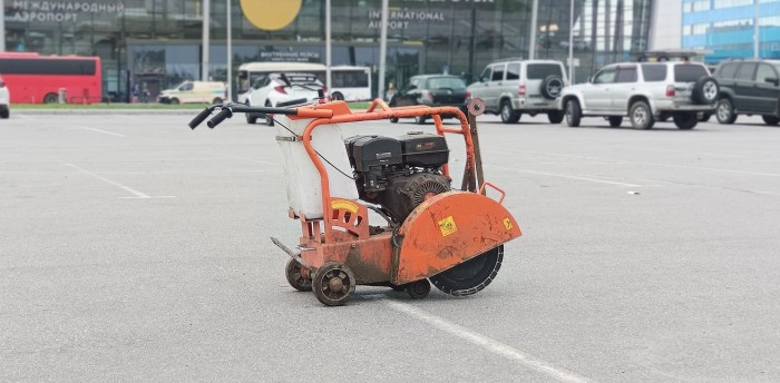 Нарезчик швов в бетоне представляет собой бензиновый или электрический двигатель с большим алмазным диском от 350 до 1200 мм. Задача оператора двигать установку прямолинейно и контролировать глубину реза. Нарезка швов в бетонном полу необходима для исключения раскола и появления трещин от усадки и "хождения" здания.